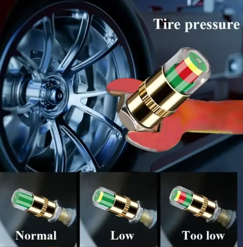 - Screw on the tire pressure cap of this product, it will show red or yellow when it is not tightened or the tire pressure is insufficient.