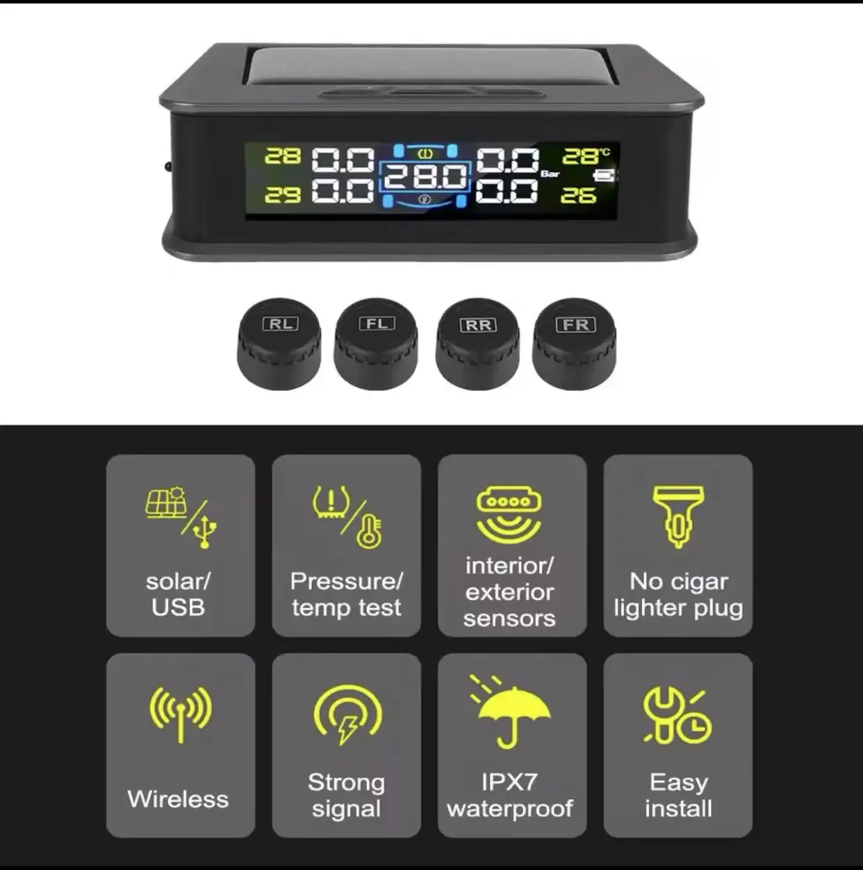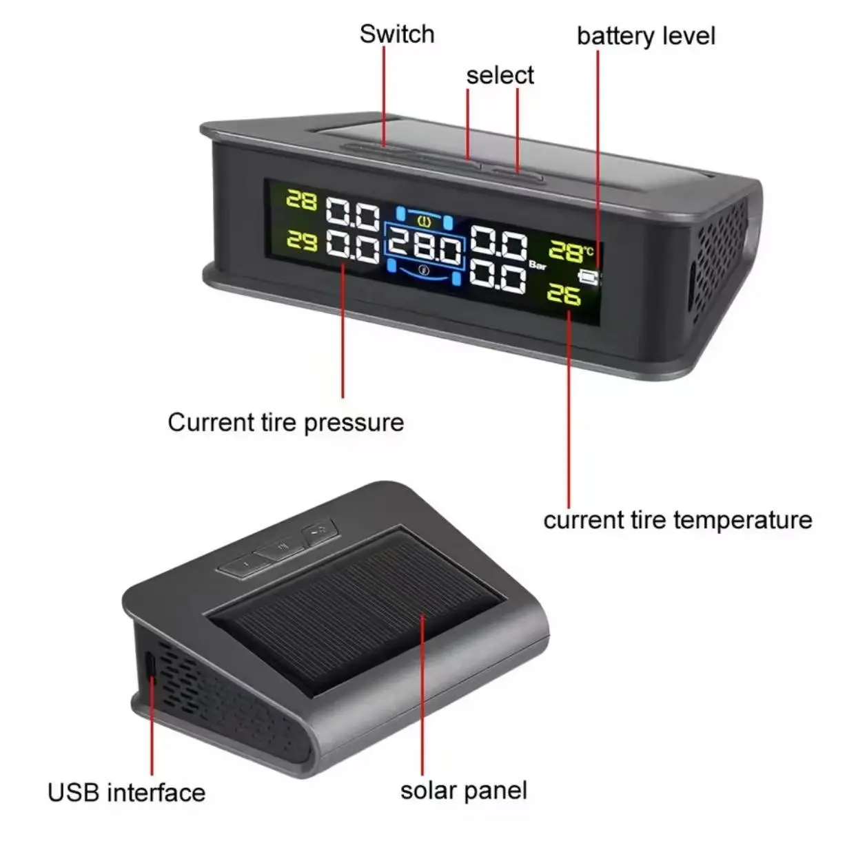 - Real-time automatic monitoring and warning of information, such as low tire pressure, high tire pressure, rapid air leak, high tire temperature and low battery voltage.